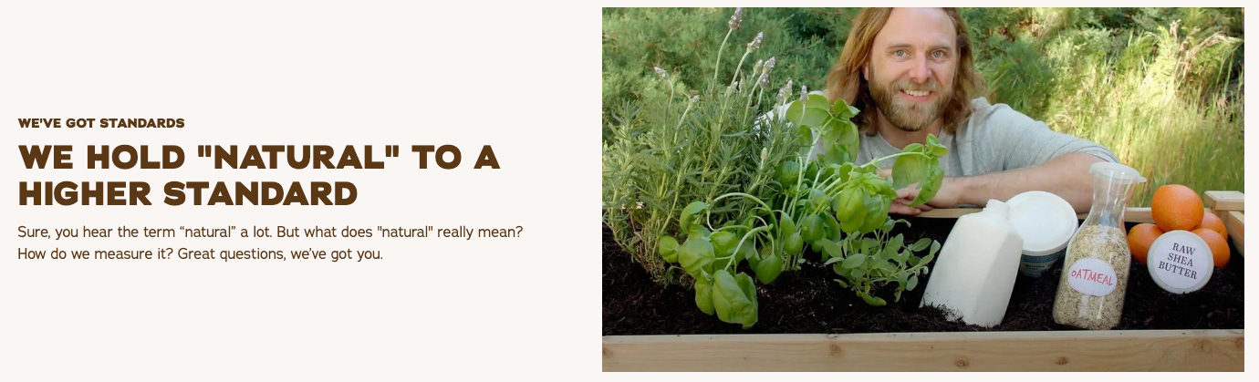 Natural vs. Químico: o discurso de “seu sabonete atual está cheio de ingrediente que você não consegue pronunciar” funciona como um gatilho educativo, criando um problema antes de apresentar solução.